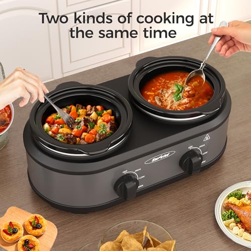 Sunvivi-Dual-Slow-Cooker-Buffet-Servers-and-Warmer-with-2-Removable-Ceramic-Pots-Slow-Cooker-Food-Warmer-with-Adjustable-Temp-Glass-Lids-Stainless-Steel-2-x-125-QT-Silver-Grey