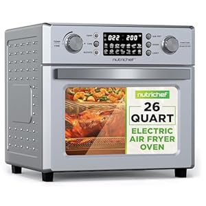 NutriChef 26L Electric Air Fryer Oven | 1700W Countertop Rotisserie & Air Fryer | 360° Rotating Feature | 10 Digital Menu Presets | Includes Drip Tray, Air Frying Basket & Bake Rack 15x16x14 (Silver)
