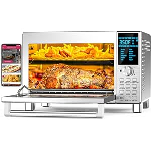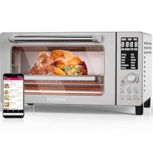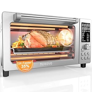 Nuwave Bravo Convection Toaster Ovens Air Fryer Combo with 30QT Large Capacity For A Whole Chicken and 13″ Pizza. Multi-Layer Cooking, Probe Feature, 100+ Presets One-Touch Smart Control Countertop