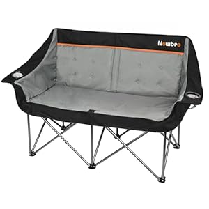 Oversized Double Camping Chair for Adults, Fully Padded Folding Camping Chairs Loveseat, Big Heavy Duty Outdoor Patio Lawn Chair with Arm Cup Holder