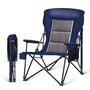 Oversized Camping Chairs for Adults, High Back Heavy Duty Lawn Folding Chair Support 500LBS, Padded Portable Outdoor Chair with Cup Holder, Blue