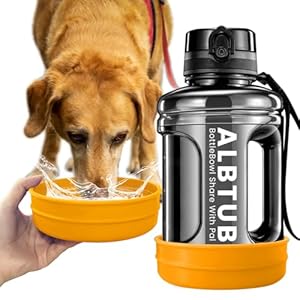 Dog Water Bottle and Large Dog Travel Bowl Combo, Portable Water Bottle Dispenser for Hunting, Hiking, Beach Camping, Park Walking 50OZ (Yellow)