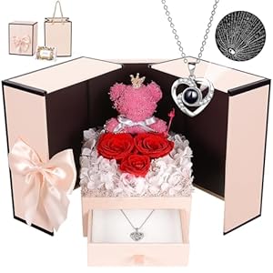 Preserved Rose Moss Bear with I Love You Necklace Rose Gifts for Women Girlfriend Wife Mom Grandma Birthday Christmas Valentines Mothers Day Anniversary Wedding Thanksgiving