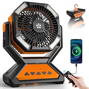 Rechargeable Fan Portable-Camping Fans for Tents, 20000mAh Battery Powered Camping Lights with Remote Hook, 4 Timer/4 Speed,Oscillating 45°/90°, Suitable for Personal Office Desk Travel Beach BBQ