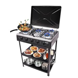 Outvita 3 Burner Propane Gas Stove for Outdoor Cooking, 225,000 BTU Camping Cooker with Removable Legs, Temperature Control Knobs for Backyard Cooking, BBQ, Baking and Frying