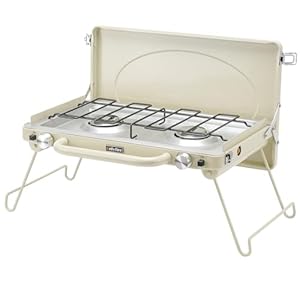 ONLYFIRE Portable Camping stove 2-Burner, Propane Camping Stove with Foldable Legs, Camping Grill Stove with Adjustable Burners, Heavy-Duty Latch & Handle for Camping, Tailgating, RV, BBQ, Off-white