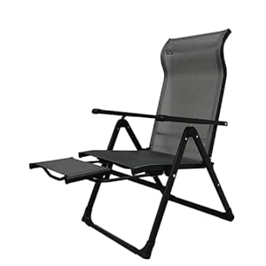 Caravan Sports Ergo+ Patio Folding Chair, Gray with Flip Out Footrest, 300 LBS Weight Capacity, 7 Recline Positions