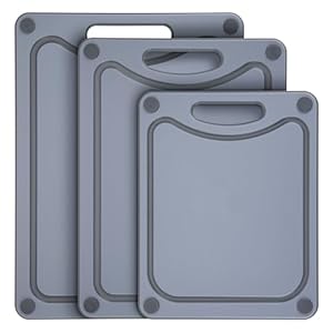 CARTMAN Kitchen Cutting Board Set of 3, Oversized 100% BPA Free Reversible Cutting Board, Juice Grooves Cutting Board, Dishwasher Safe, Easy Grip Handle Border, Food Chopping Boards, Gray