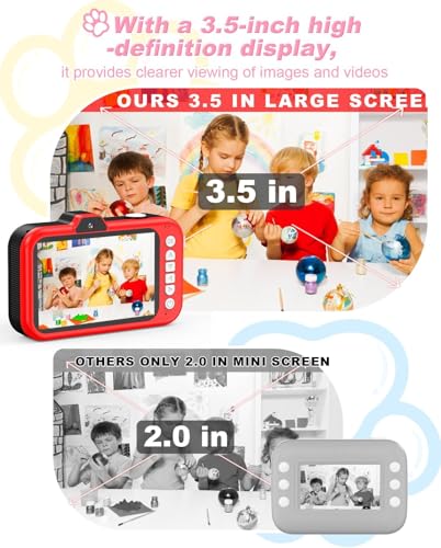 Specification: Kids Camera, 1080P 48MP Front Selfie Toddler Camera, 3.5 inch Big Screen Toy Camera, 10X Zoom in Chritmas Birthday Gift Cameras for Kids Boys Girl Age 2 3 4 5 6 7 8 9 10 11 12, Red