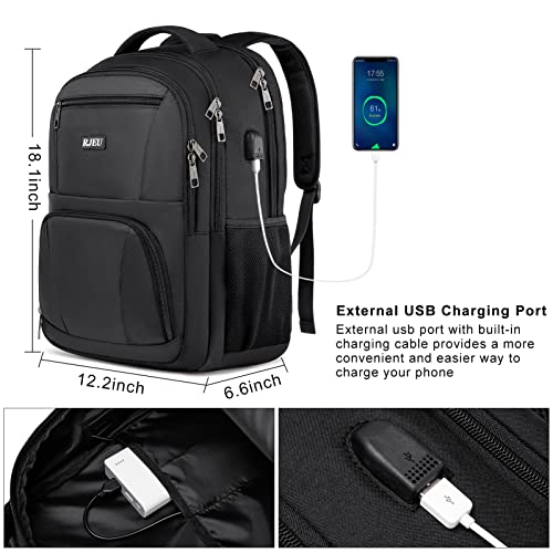 Backpack for School, Boys Backpack with USB Charging Port, Water Resistant College Back Pack for Men Fits 15.6 Inch Laptop, High School Bookbag Black