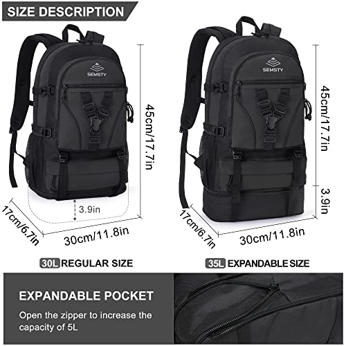 Unique Design Backpack: Hiking backpack in expandable version. Large capacity & lightweight hiking daypack. Before extension: 11.8 x 6.7 x 17.7 inch (30 L). After extension:11.8 x 6.7 x 21.6 inch (35 L)