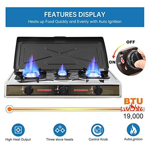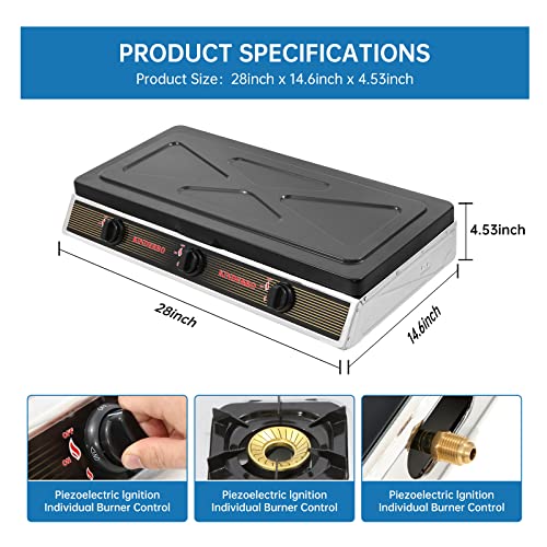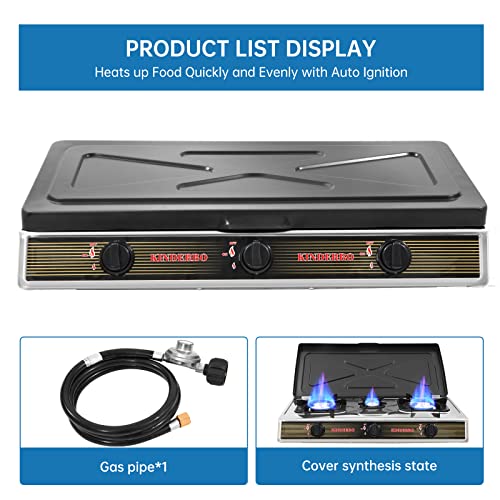 Specification: Propane Gas Cooktop 3 Burner Gas Stove Portable Gas Stove Stainless Steel Stove Three Burner Auto Ignition CampingThree Burner LPG for RV, Apartment, Outdoor