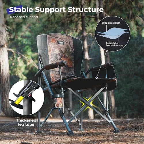 Strong & Stable Support: This folding camping chair is equipped with a robust X-shaped steel frame, provides excellent support and stability. It can safely hold up to 400 lbs, ensuring a secure and reliable seating option for everyone