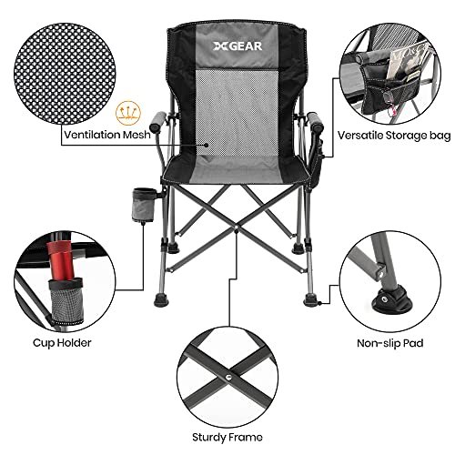 Hard Arm Folding Camping Chair Beach Chair Lawn Chair for Adults with Mesh Back (Cool Grey 2pc)