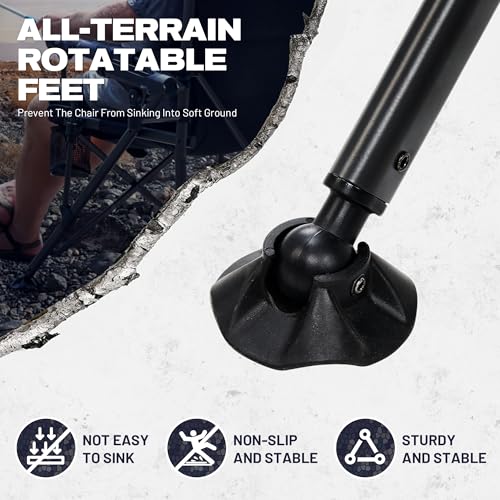 Oversized Camping Chair, Heavy Duty Support 350 LBS Folding Chair, Feet Rotatable Padded Fishing Chair with Rod Holder, Cup Holder, Side Pocket, Hard Armrest for Beach, Fishing,Trip,Picnic,Lawn