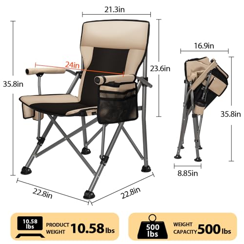 Specification: QUYUAN Camping Chair for Adult, Heavy Duty Folding Chair for 500lbs, Comfortable Lawn Chairs with Fully Padded, Compact Camp Chairs for Outdoor Sports, Fishing, Concerts, Beach (Without Heated)