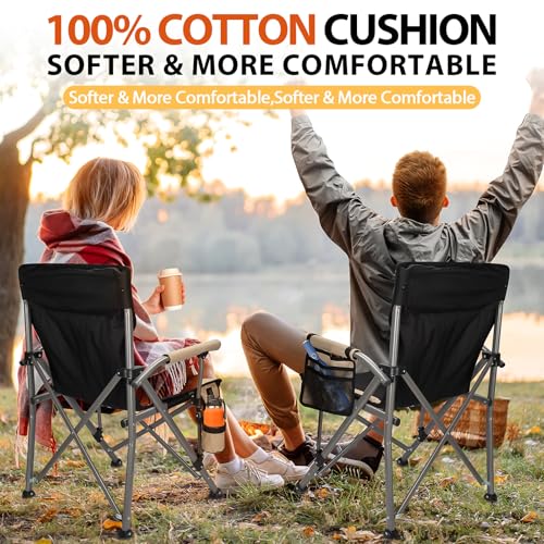 QUYUAN Camping Chair for Adult, Heavy Duty Folding Chair for 500lbs, Comfortable Lawn Chairs with Fully Padded, Compact Camp Chairs for Outdoor Sports, Fishing, Concerts, Beach (Without Heated)