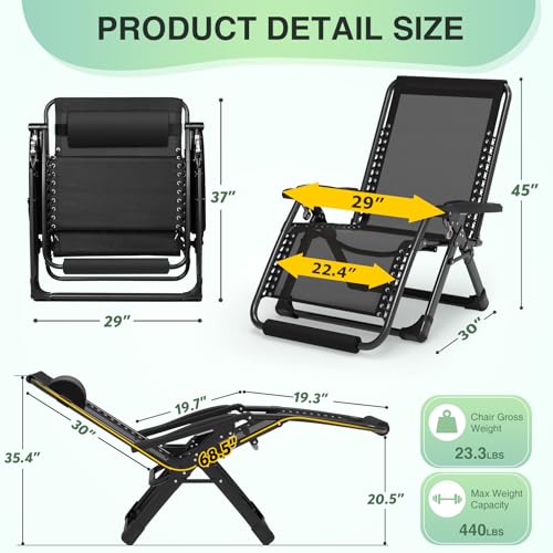 Suteck Oversized Zero Gravity Chair,29In XL Lounge Chair w/Removable Cushion&Headrest, Reclining Camping Chair w/Upgraded Lock and Footrest, Reclining Patio Chairs Recliner for Indoor Outdoor