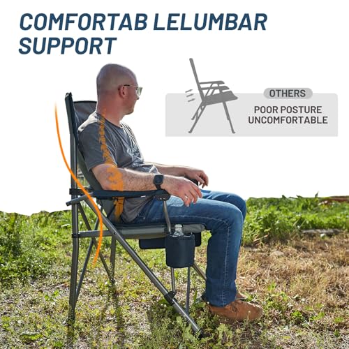 Maximum Comfort with Lumbar Support: From adjustable lumbar support and padded cushions to hard armrests, everything about this heavy duty camping chair is designed to help you relax.Designed to contour to the natural curvature of your spine, providing excellent support and comfort while sitting for extended periods. Extra cooler pocket to keep your drinks cool.
