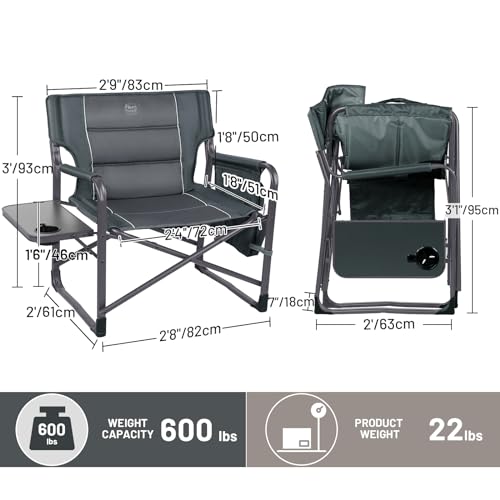 TIMBER RIDGE XXL Upgraded Oversized Directors Chairs with Foldable Side Table, Detachable Side Pocket, Heavy Duty Folding Camping Chair up to 600 Lbs Weight Capacity (Gray) Ideal Gift