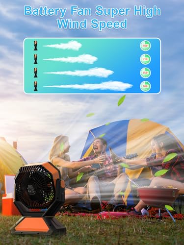 [Portable Camping Fan With Hook]:The outdoor portable fan for camping has a Hook that can rotate 360 degrees. You can hang the fan up and adjust the right angle. Hang it in a tent, tree branch, or vehicle. Easily adjust the fan to the optimal blowing angle. Suitable for office desks, dining tables, cars, and floors.