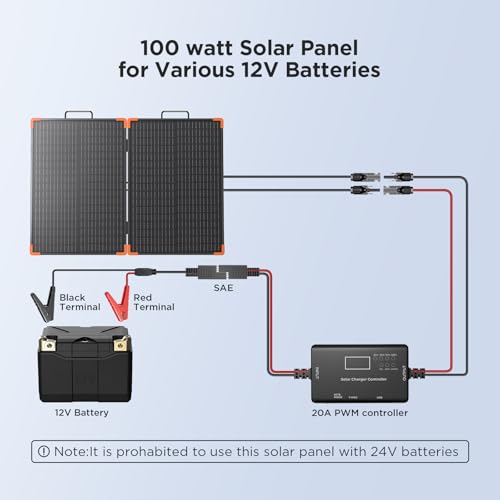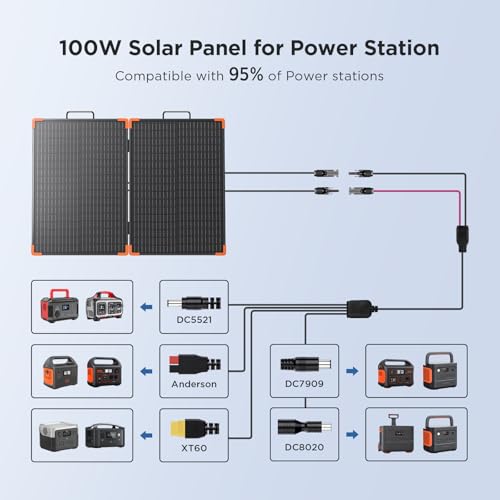 【Extensive Accessories for Wide Compatibility】This 100 watt solar panel comes with a versatile 5-in-1 solar charging cable, featuring XT-60, Anderson, DC5521, DC7909, and DC8020 adapters, ensuring compatibility with most power stations. Additionally, the 100w solar panel includes a PWM charge controller and an SAE-Alligator Clip Cable, allowing you to charge 12V batteries directly.Note:This solar panel can’t store electricity