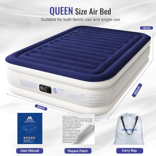 Specification: Queen Air Mattress with Built in Pump, 18” Luxury Comfort Raised Blow Up Mattress, Upgraded Fast 3 Mins Self Inflatable Mattress with Dual Air Chamber, Portable Air Bed for Camping, Home & Guests
