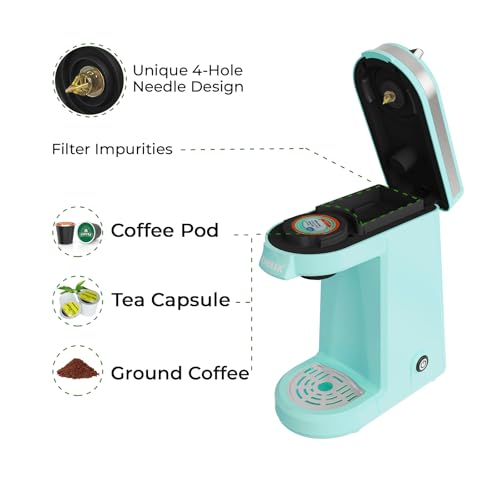 Tiny But Complete: BPA-Free material for water tank and piercing needle. The four-hole needle of machine can fully immerse grounds and extract the essence of coffee. Adjustable drip tray keep brew space neat. Detachable accessories can be washed directly