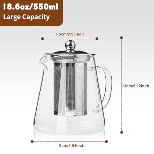 Glass Teapot, Tea Pot with Removable Infusers for Loose Tea, Borosilicate Glass Tea Kettle Tea Maker Stovetop for Party, Camping,Travel (550ML)