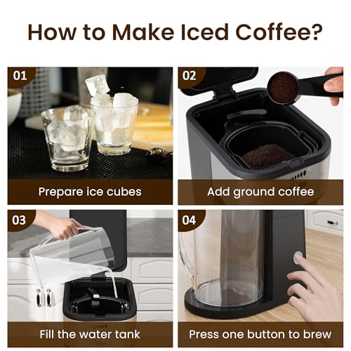 Specification: Iced Coffee Tea Maker with Reusable Filter Basket, 3 QT Pitcher, Iced Tea and Coffee Machine , Tea Makers for Iced Tea, Lattes, Lemonade and Flavored Water, Adjustable Brew Strength, Black and Silver