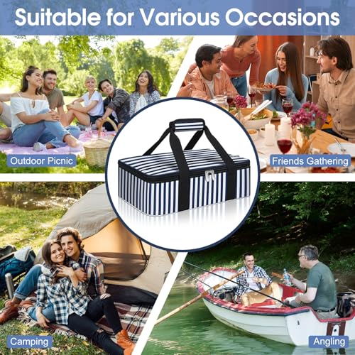 Insulated Casserole Carrier, Portable Casserole Carrier for Hot or Cold Food Lunch Tote Warmer or Cooler Bag, Lasagna Lunch Bag for Potluck Parties- Fits 9″ x 13″ Baking Dish-Blue Stripes