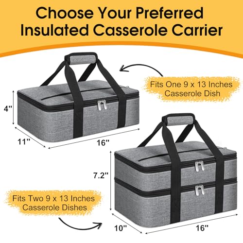 Insulated Casserole Carrier, Portable Casserole Carrier for Hot or Cold Food Lunch Tote Warmer or Cooler Bag, Lasagna Lunch Bag for Potluck Parties- Fits 9″ x 13″ Baking Dish-Grey