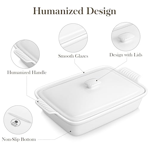 Specification: MALACASA 3.4 Quart Baking Dish With Lid, Porcelain Casserole dish with Lid, 13 x 9 Lasagna Pan Deep with Lid, Rectangular Bakeware With Handle, Microwave, Oven Safe, White, Series BAKE