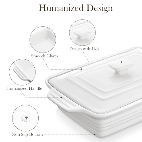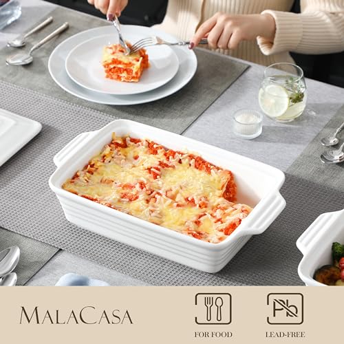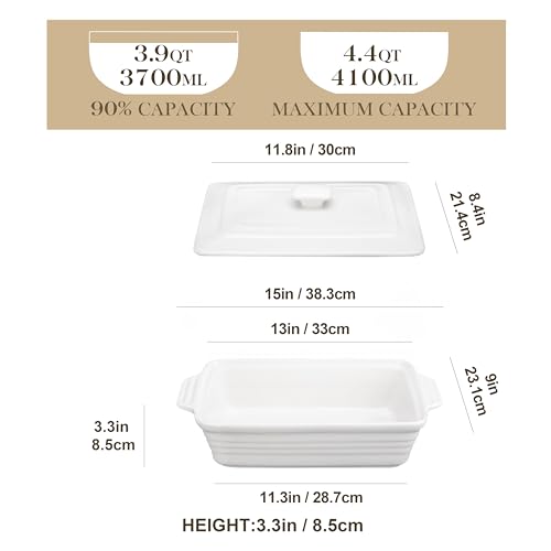 Specification: MALACASA 4.4 Quart Baking Dish With Lid, Porcelain Casserole dish with Lid, 13 x 9 Lasagna Pan Deep with Lid, Rectangular Bakeware With Handle, Microwave, Oven Safe, White, Series BAKE