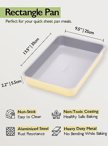 Nonstick Rectangle Baking Pan 9×13 Inch, Ceramic Coating, Non-Toxic, Rust Resistant Aluminized Steel, Perfect Baking Dish for Brownie Cake, Roasting, Lasagna – Butter