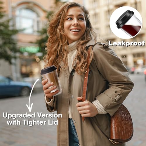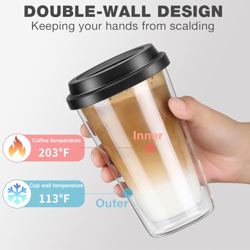 【THE IDEAL COFFEE CUPS FOR YOU】Set of 2 handmade, double-wall coffee mugs with lid. Each of the glass cups holds 12 ounces, which is large enough to nicely go with espresso machines or coffee makers, yet perfectly sized for espresso, tea, coffee, milk, juice, latte, mocha, etc.