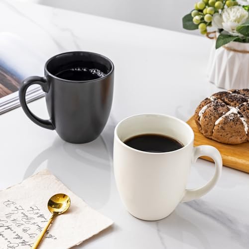 ERGONOMIC AND STYLISH DESIGN: These ceramic mugs feature an ergonomic handle that provides a comfortable grip for your hand. The smooth rim and matte black finish on the outside make drinking from these mugs a comfortable experience. The stable base ensures that the mugs are safe for daily use. With their modern design, these mugs are perfect for special occasions or for everyday use.