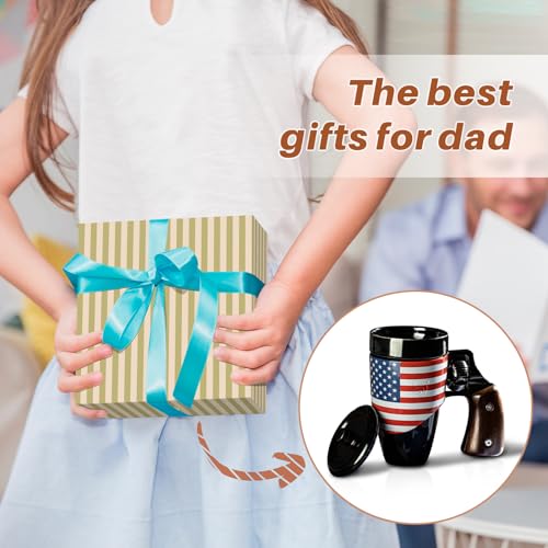 Coffee Mugs for Men, Ceramic Novelty Funny Gun Cup Revolver Mugs, Birthday Gifts for Father, Black Cool Unique Coffee Mug for Men, Fathers Day Dad Gifts(16 oz Black Flag)