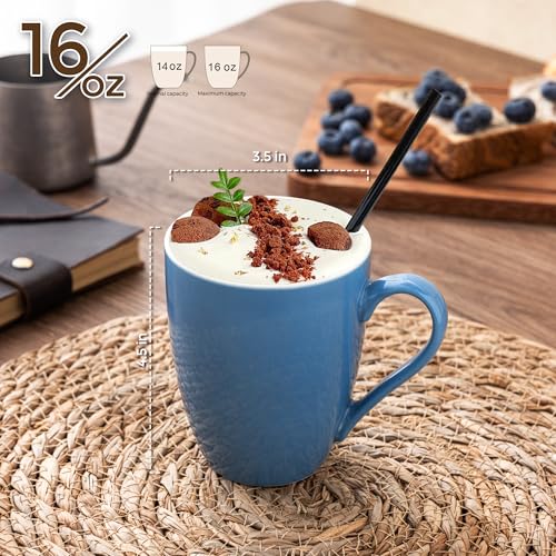 GBHOME Porcelain Coffee Mugs Set, 16 oz Large Coffee Mugs Set of 4 for Dad Mom Women Men, Light Weight Ceramic Coffee Cups for Cappuccino,Latte,Tea,Cocoa, Dishwasher & Microwave Safe, French blue