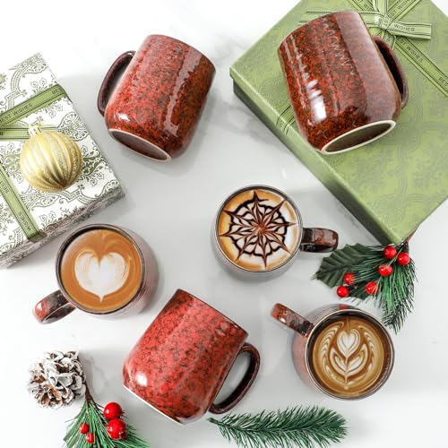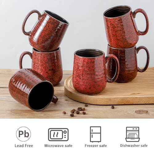 UNIQUE RED GLAZE DESIGN: This 6-piece ceramic mug set features a distinctive red glaze that adds an artistic touch to your kitchen, making it an ideal choice for daily use at home or in the office