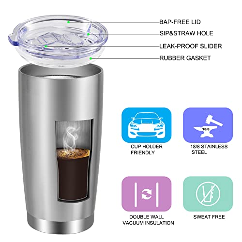 Specification: VEGOND 20oz Tumbler with Lid and Straw Stainless Steel Tumbler Cup Bulk Vacuum Insulated Double Wall Travel Coffee Mug Powder Coated Coffee Cup(Stainless 6 Pack