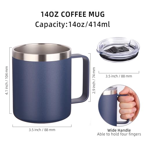 【MULTIPURPOSE】The 14 oz stainless steel coffee mug is perfect for daily use, suitable for office, home, garden, also perfect for outdoor travel coffee mugs thanks to the high quality painting process and insulation technology, take it to the beach, camping, outdoor trips, and enjoy the good time on the road. Suitable for all kinds of festivals, it can be a perfect gift for birthdays, Mother’s Day, Father’s Day, Christmas, as a surprise for your important people and harvest their happy smiles.