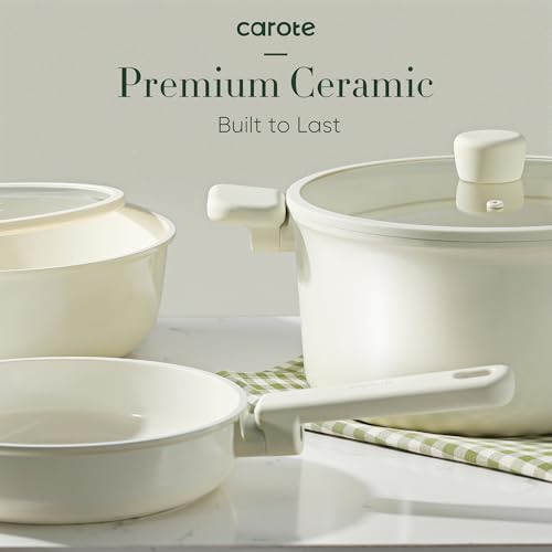 Specification: CAROTE 18Pcs Nonstick Ceramic Cookware Set, PFAS/PFOA Free, Cream White Pots and Pans Set Non Stick, Non-toxic Cookware,Kitchen Cooking Pan Set, Large Capacity