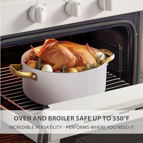 【For all Stovetops Except Induction】- The nonstick cookware set does not have a magnetic induction bottom, which allows faster heating on other cooktops, saving time and energy. Oven safe up to 550°F.