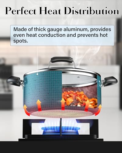 Good Heat Conduction: The nonstick pots and pans cooking set is made of thick-gauge, durable aluminum that provides quick and even heat conduction, preventing hot spots