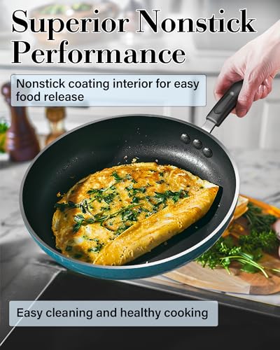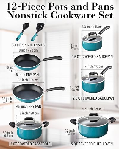 Specification: Cook N Home Pots and Pans Nonstick Cookware Set 12-Piece, Kitchen Cooking Set with Frying Pans and Saucepans, Induction Compatible, Turquoise