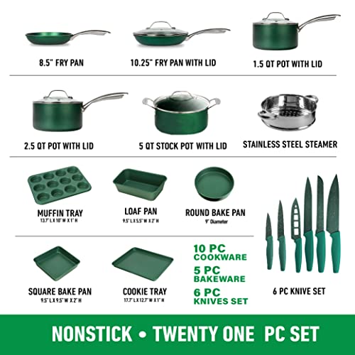Granitestone 21 Pc Kitchen Pots and Pans Set Non Stick, Kitchen Cookware Sets, Pot and Pan Set, Nonstick Cookware Set, Diamond Coated Non Stick Pots and Pan Set, Dishwasher Safe – Green