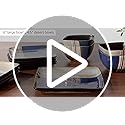 Specification: Elama Square Stoneware Loft Collection Dinnerware Dish Set, 16 Piece, Blue and Tan with White Accents