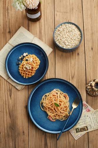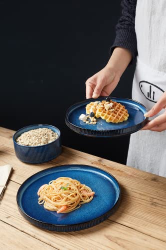 Famiware Star Plates and Bowls Sets, Modern Stoneware Dinnerware Sets for 8, 24-Piece Kitchen Dish Sets – Microwave and Dishwasher Safe, Chip and Scratch Resistant, Nebulas Blue