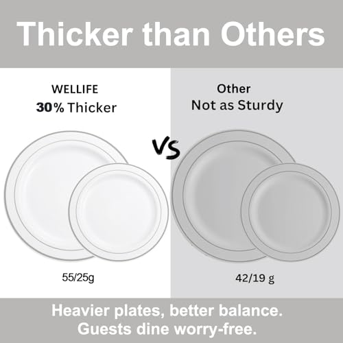 Specification: WELLIFE 700 Pcs Silver Plastic Plates for 100 Guests – Party Supplies Includes 200 Silver Plastic Plates,300 Silverware,100 Napkins,100 Cups for Party,Disposable Dinnerware Set